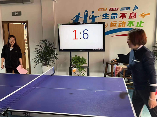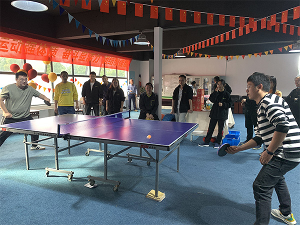 乒乓球比賽的組織現(xiàn)場(chǎng)被同事們連連稱贊,評(píng)價(jià)我們是:業(yè)余的選手,專業(yè)的裝配(現(xiàn)場(chǎng)有電子記分屏呢),誰讓我們干什么都有著那么一股認(rèn)真的勁呢!不過我們的男子乒乓球決賽可是巔峰對(duì)決賽呢,看得人好不熱血沸騰,乒乓球男子冠軍也現(xiàn)場(chǎng)收獲了好多迷妹迷姐們崇拜的眼神和尖叫。